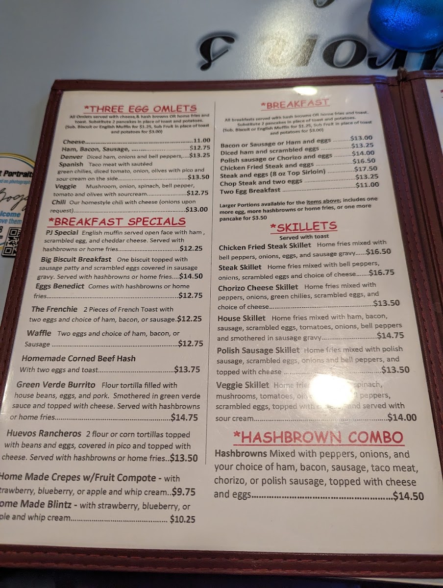 The menu features an array of simple café staples like home fries, fluffy blueberry pancakes, and savory options such as the country fried steak or the cheesy chorizo skillet. These dishes pair naturally with warming drinks like a rich hot chocolate or a well-crafted Bloody Mary, perfect for a relaxed weekend brunch or a midday treat.